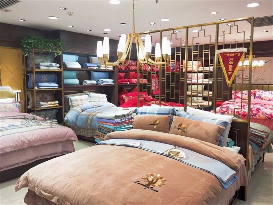 賈:除了近期新開的禹州商場(chǎng)專柜,還在培養(yǎng)階段,另外兩家的年銷售額都在百萬以上。長葛專賣店是我最早的一家店,面積不大但很溫馨,連續(xù)幾年銷售額增幅都在25%以上。長葛一峰城市廣場(chǎng)專柜我也已經(jīng)經(jīng)營很多年了,年銷售額超200萬,每個(gè)月都是商場(chǎng)家紡類的銷售冠軍。